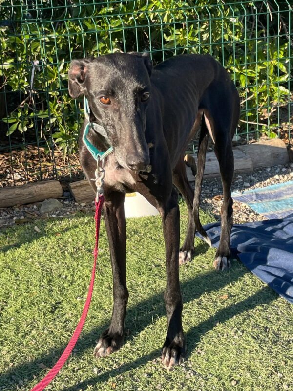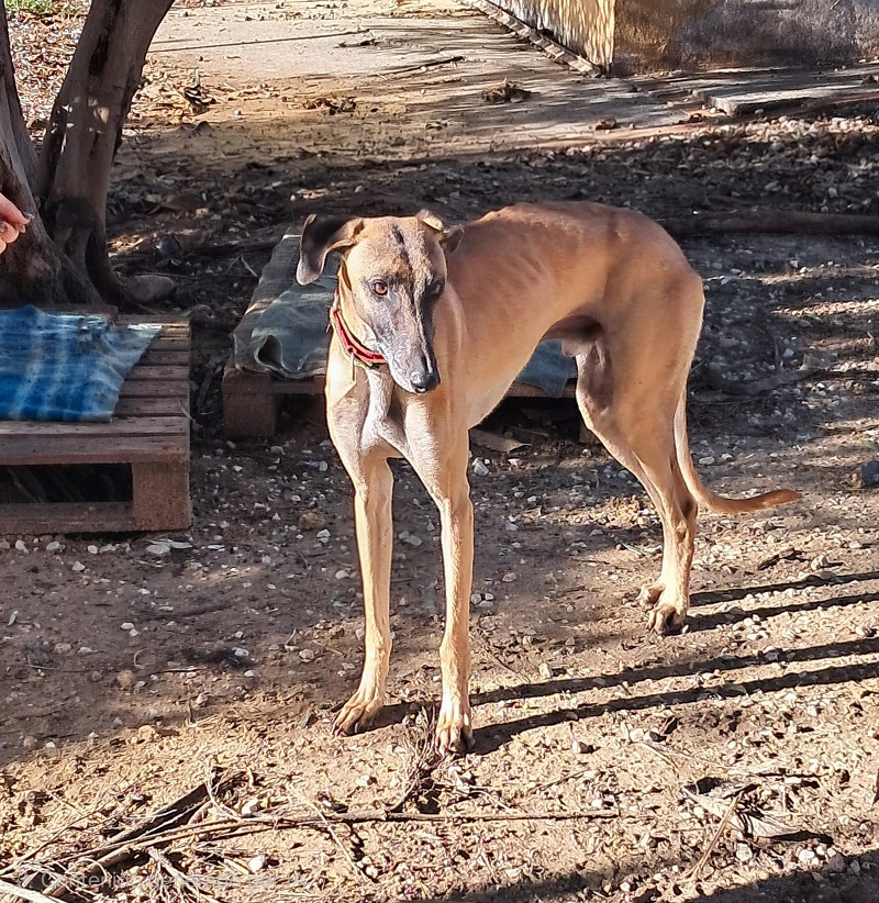 Jordan es un perro muy tímido, muy cauteloso y aún le falta por confiar en el ser humano. Hemos visto una mejoría pero aún le queda bastante.