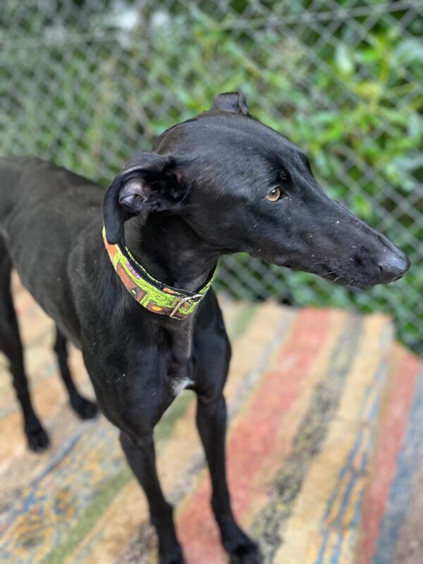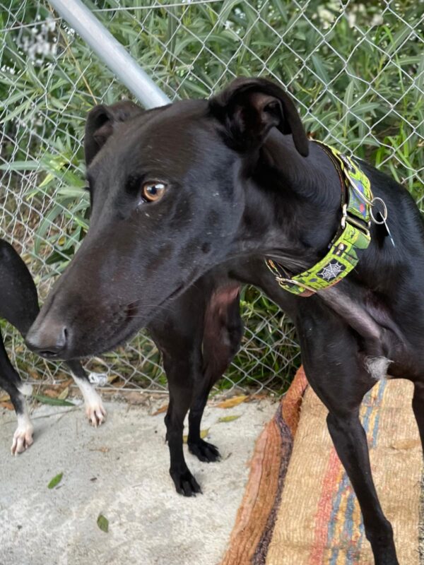 Manuela se lleva muy bien con las compañeras con las que comparte espacio y pasea muy bien con correa. Es una perra maravillosa.